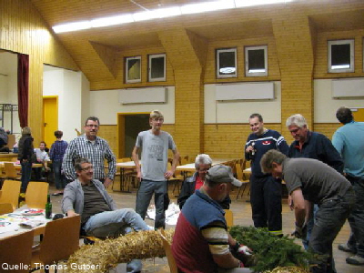 Am Mittwoch Abend haben die ehemaligen der Kerbegesellschaft, allesamt Mitglieder der Einsatzabteilung, begonnen den Kerbekanz zu binden.